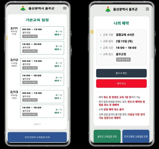 📌 울주군 민방위 교육 예약 시스템, 뭐가 달라졌나?