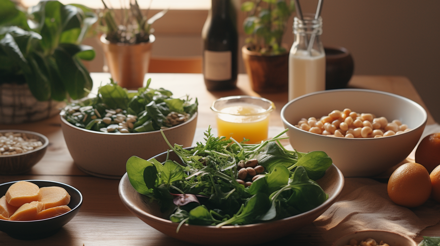 시리얼에 두유 붓기, 콩 샐러드 추가, 건강 주스 한 잔 등