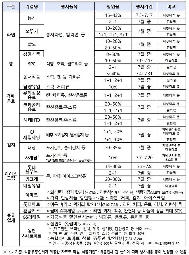 - 7월: 라면, 빵 등 생필품 중심 할인